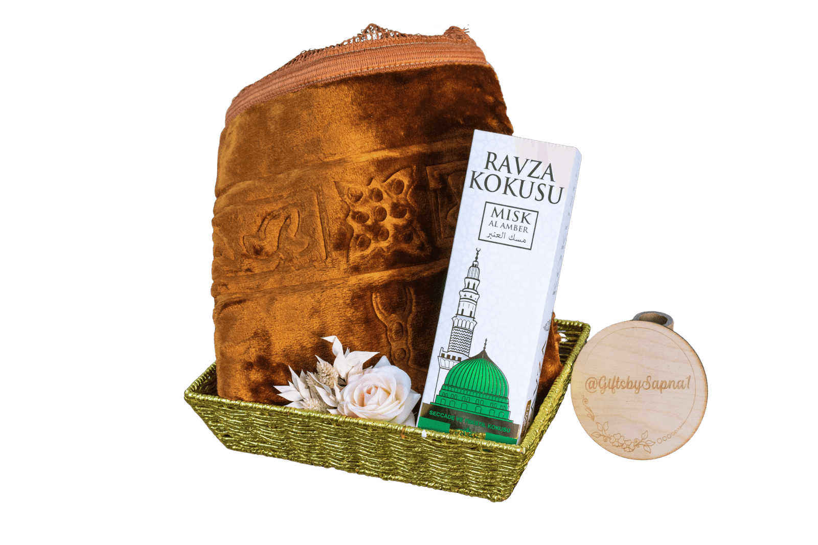 A meaningful gift featuring a soft padded prayer mat and a soothing air freshener—perfect for peaceful moments and reflection.