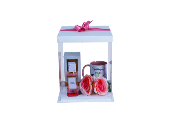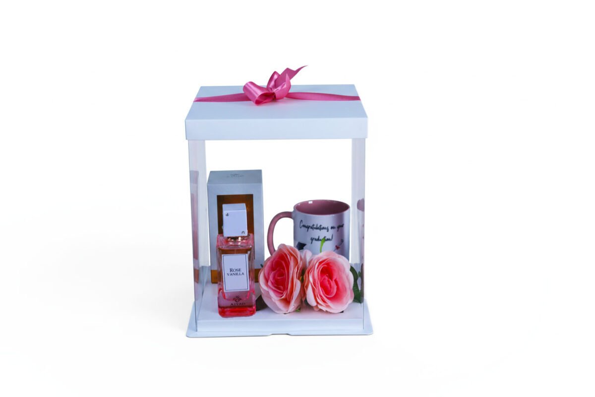 Mark their achievement in style with this graduation mug and perfume gift box. Combining practicality with elegance, it’s a thoughtful present for graduates to cherish and enjoy. It comes in a stunning gift box, complete with decorative flowers and a ribbon.