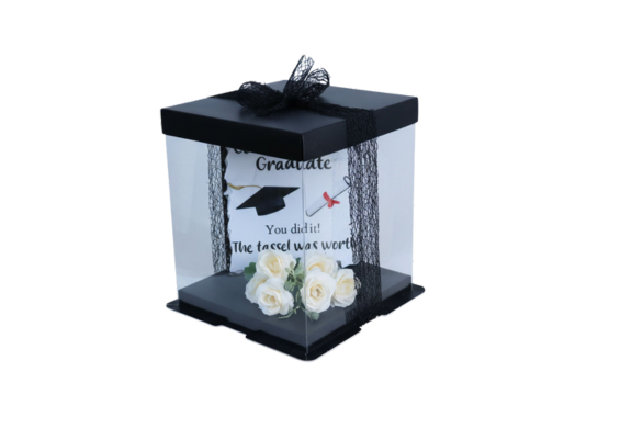 This sleek graduation slate box is the perfect way to commemorate academic success. Its elegant design makes it a standout keepsake for celebrating hard work and new beginnings. It comes in a stunning gift box, complete with decorative flowers and a ribbon.