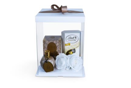 This enchanting perfume comes in a stunning gift box, including Lindt chocolates, complete with decorative flowers and a ribbon. A thoughtful and luxurious gift for birthdays, anniversaries, or any special occasion.