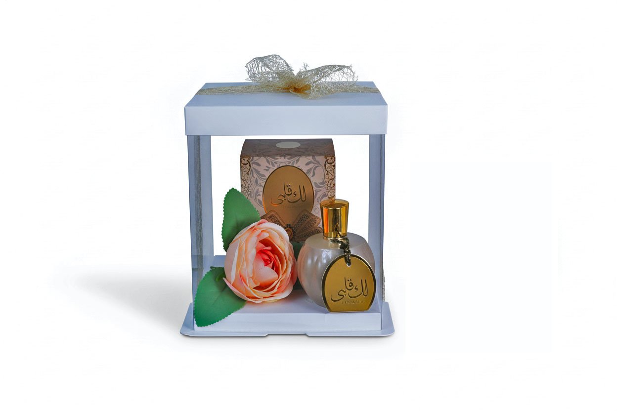 This enchanting perfume comes in a stunning gift box, complete with decorative flowers and a ribbon. A thoughtful and luxurious gift for birthdays, anniversaries, or any special occasion.