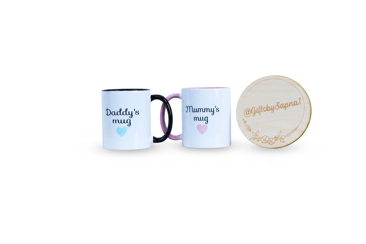 A beautifully coordinated set of mummy and daddy mugs, making the perfect gift for new parents or parents-to-be