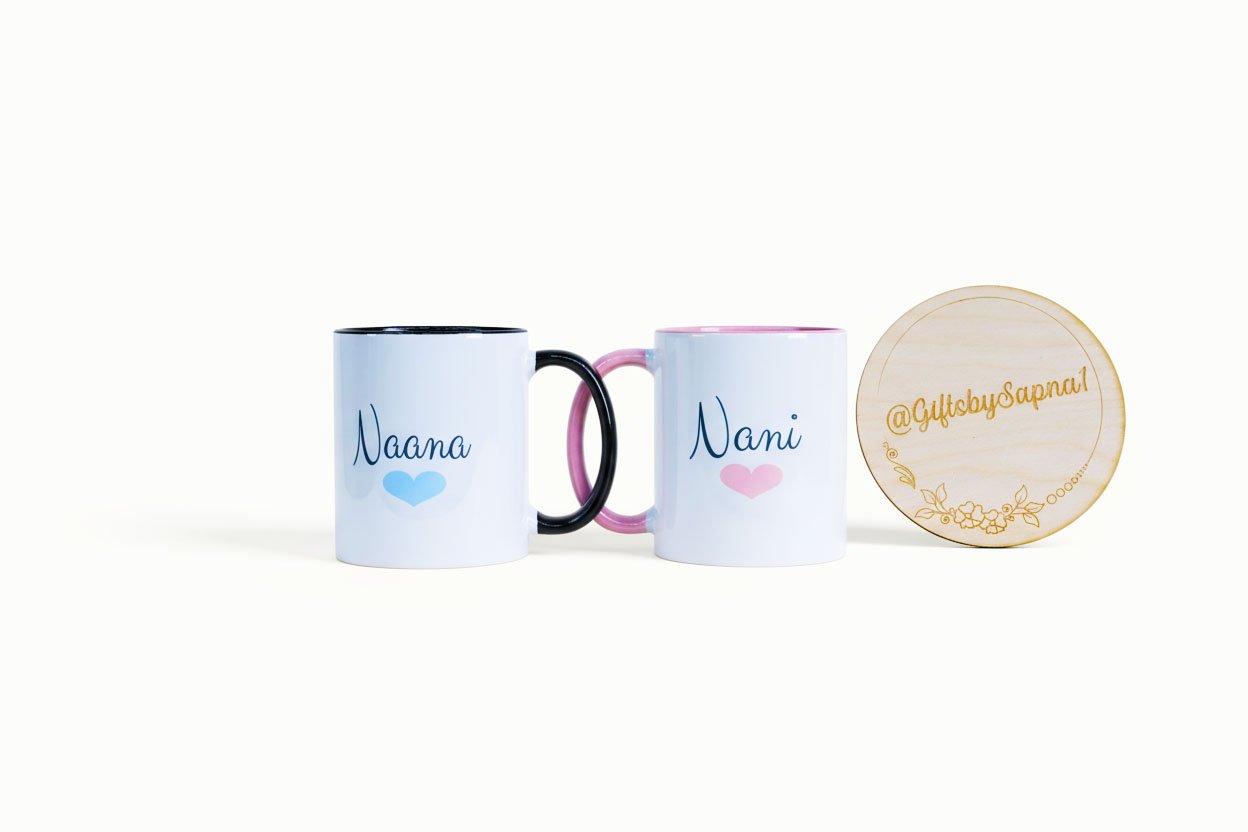 A beautifully coordinated set of Nani & Nana mugs, making a thoughtful gift for grandparents
